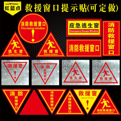 消防救援窗标识应急逃生窗标识贴纸紧急救援窗口标志提示牌可定制双面红色三角形透明玻璃指示贴背胶正面带胶 虎窝淘
